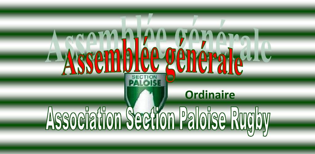 Conformément aux articles 20 et 21 de nos statuts, vous êtes invités à participer à l’Assemblée Générale ordinaire de l’Association Section Paloise Rugby qui se tiendra le