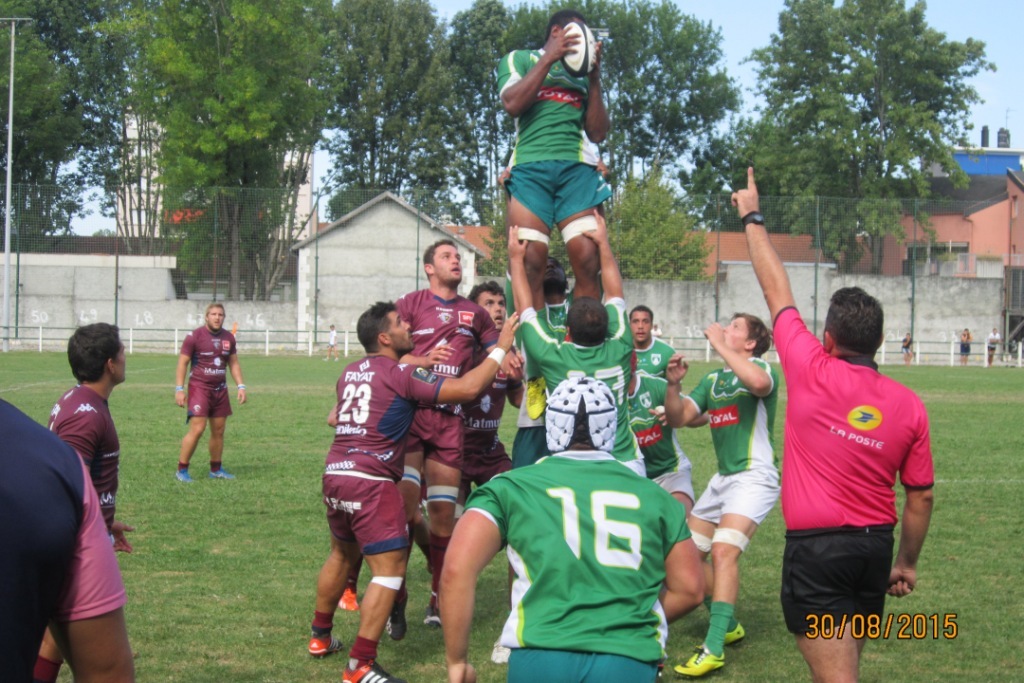 La rencontre démarre sur les chapeaux de roue et sur le coup d’envoi, Lafon, notre pilier droit y laisse le coude sur la phase de récupération et est contraint à sortir. A la 4ème minute, les nôtres bénéficient d’une pénalité sur les 40 mètres adverses que notre arrière Malie réussira.