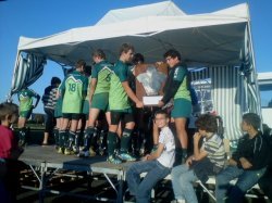 Nous avons pu assister à une belle finale où nos vert et blanc mettaient à mal leurs adversaires de Bizanos sur le score final de 20 à 0 pour le plus grands bonheur de tous leurs supporters présents et surtout Samuel, Franck et Christophe leurs entraîneurs.