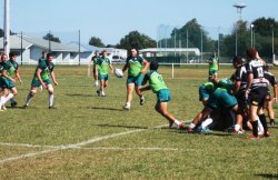 Notre équipe Crabos recevait Brive en guise d’entrée du championnat de France 2012-2013. Face à une équipe puissante et athlétique, nos jeunes réussissaient leur entame pour vite mener 8 à 0, se traduisant par une pénalité de Clouté et un essai de Condou. Nos adversaires s’accrochaient et revenaient dans le match en inscrivant une pénalité. Une seconde pénalité de Clouté, pour faute au sol d'un joueur de Brive, redonnait un peu d'air aux nôtres. 11 à 3, dans le dernier quart d'heure de cette première mi-temps, les brivistes s’employaient à remettre la main sur le ballon et auraient pu marquer si une bonne défense inspirée par Pourailly et Clouté n’avait repoussé nos adversaires hors du terrain. Hélas plus tard, suite à une faute en mêlée, le coup franc était vite joué et le 9 briviste filait marquer l'essai. La transformation échouait grâce à la montée en pointe de Condou et Clouté qui réussissaient à contrer le coup de pied. Le score affichait 11 à 8. Sur le renvoi nos jeunes récupéraient le ballon et après plusieurs temps de jeu mettaient Brive à la faute. La pénalité réussie par Clouté indiquait le score de 14 à 8 à la pause.