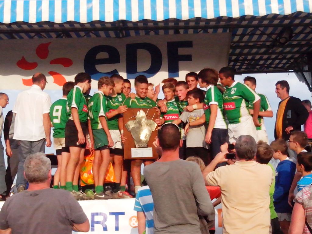 Samedi 19 octobre, nos minimes décrochent le premier bouclier de la saison à Oloron. Inscrits pour le 8ème TGV (Tournoi des Gaves et des Vallées) ils ont lavé l'affront subi samedi dernier à Mt de Marsan pour enfin sortir vainqueurs et soulever le magnifique trophée Samuel DOUMBIA.