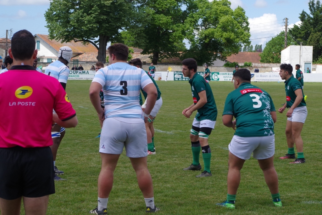 Diminués aussi par les blessures de quatre joueurs « cadres », nos jeunes n’ont pu rivaliser face à des franciliens gaillards, tant par leur imposant physique que par le jeu qu’ils ont produit. Dès la cinquième minute de jeu, les ciel et blanc inscrivent leur premier essai. Il s’en suivra bien d’autre au cours de cette première période, puisqu’à la mi-temps le score affichera 21 à 0.